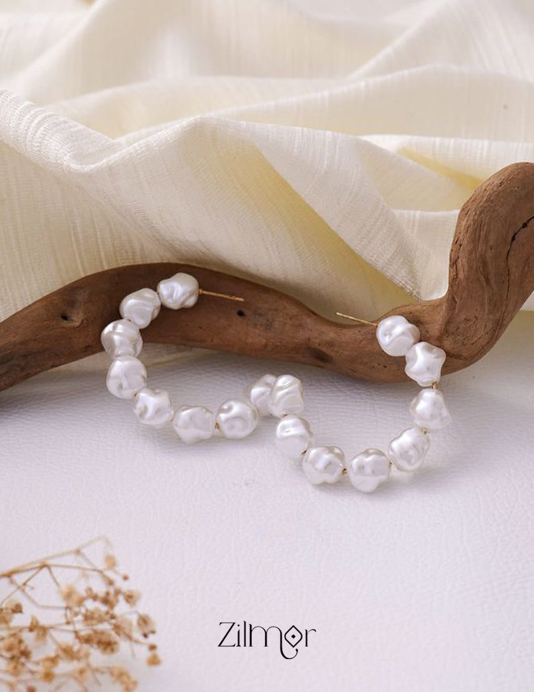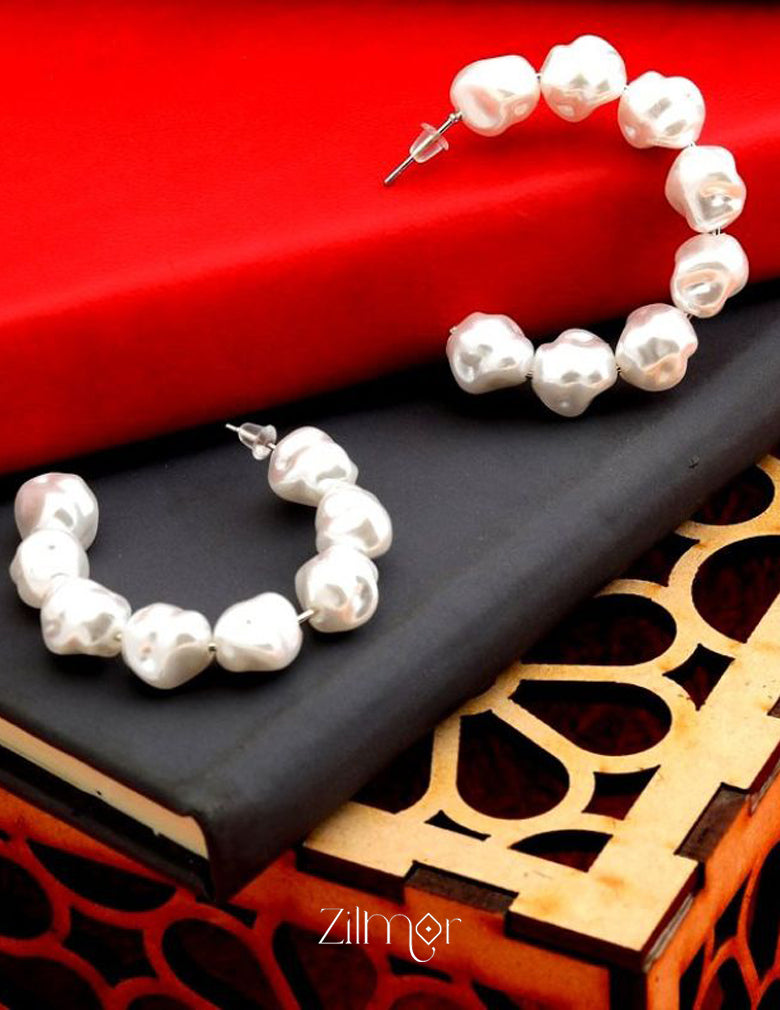 Silver Plated Open Circular Shaped Baroque Pearl Hoops Earring