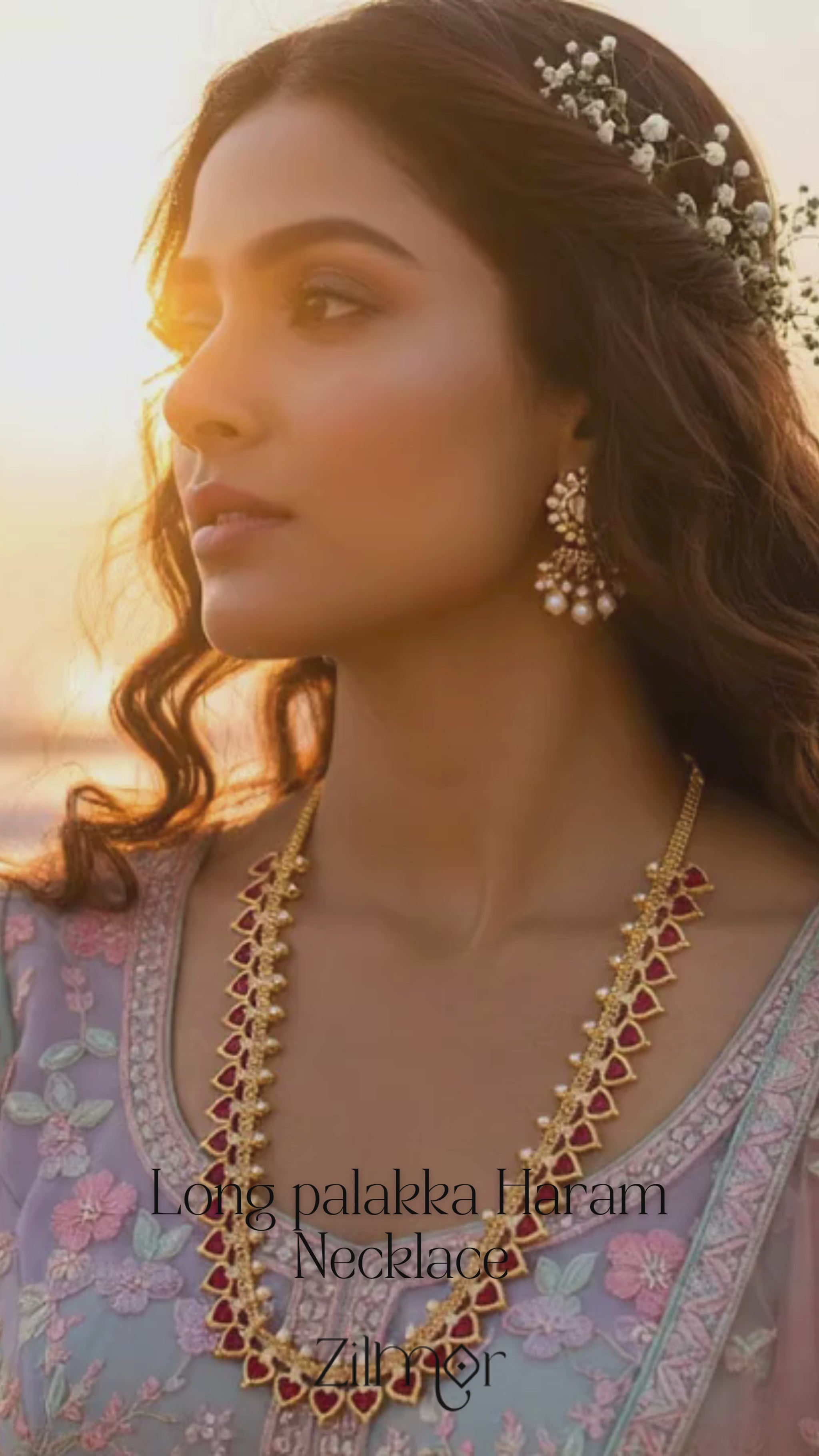 Gold tone Long palakka Haram for women and girls. includes 50 palakka Beads.