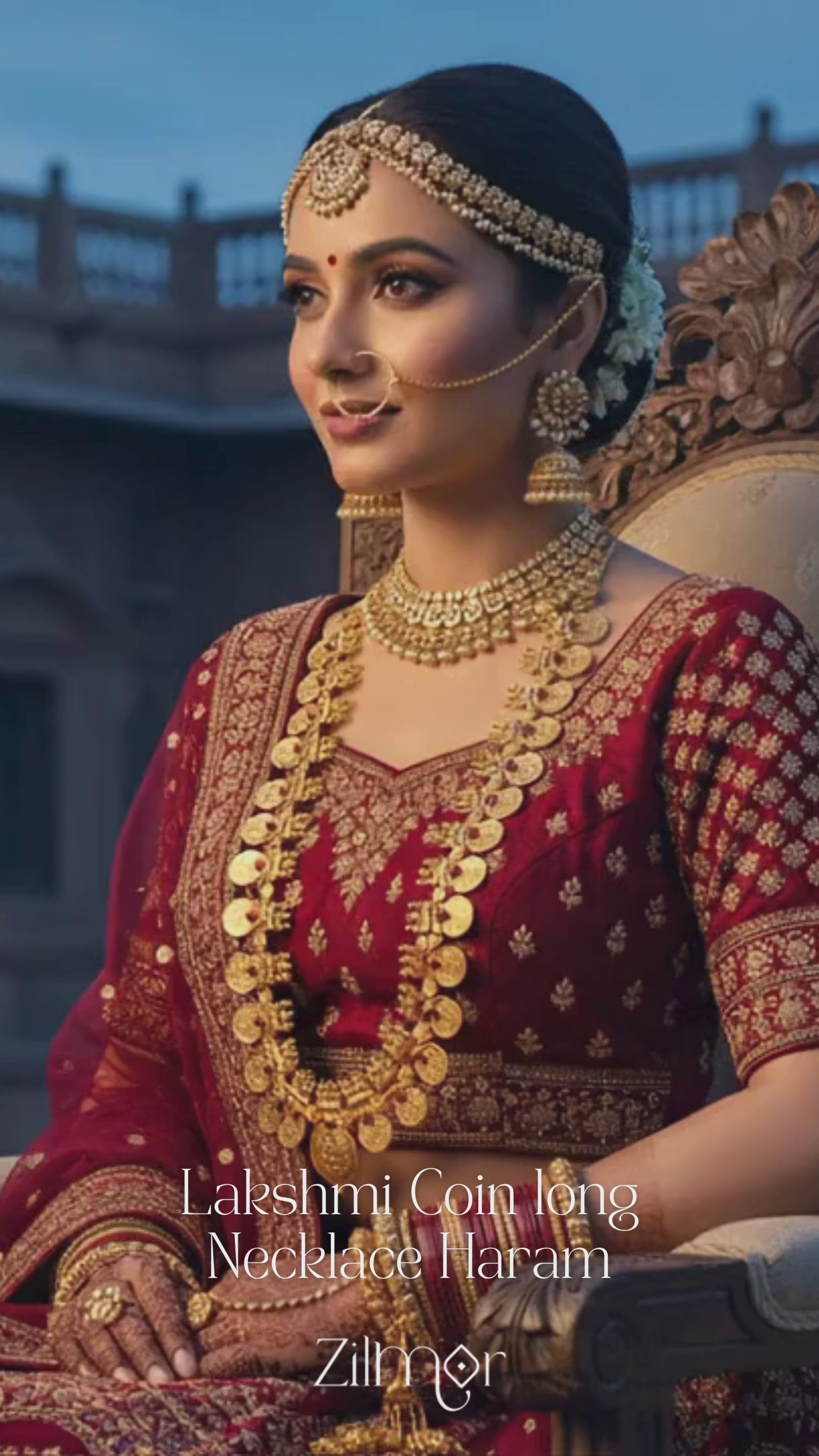 Gold tone Lonh Lakshmi coin Haram for women and girls.