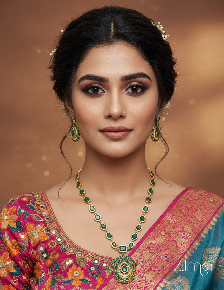 Make a bold and elegant statement with this AD Stone Choker Necklace Earrings Set, expertly designed to bring a touch of sophistication to any outfit.