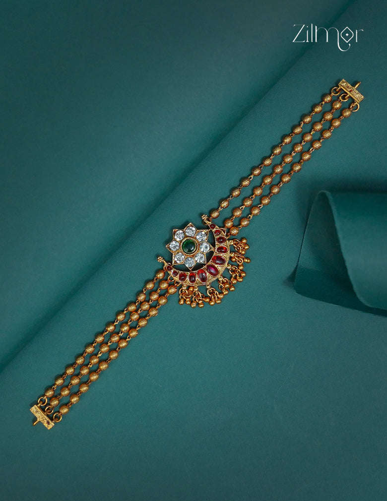 Centered by a pendant encrusted with Kemp stones and AD (American Diamond) stones, arranged in classic floral or filigree motifs.