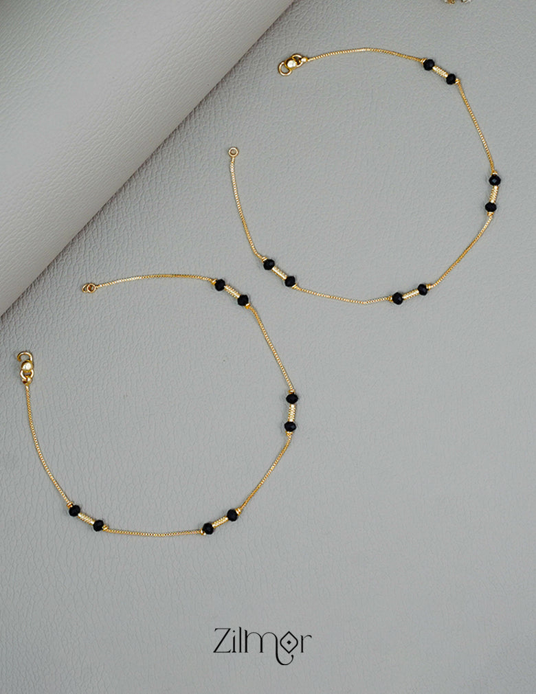 Gold-Plated Black Beaded Anklet (Pair)