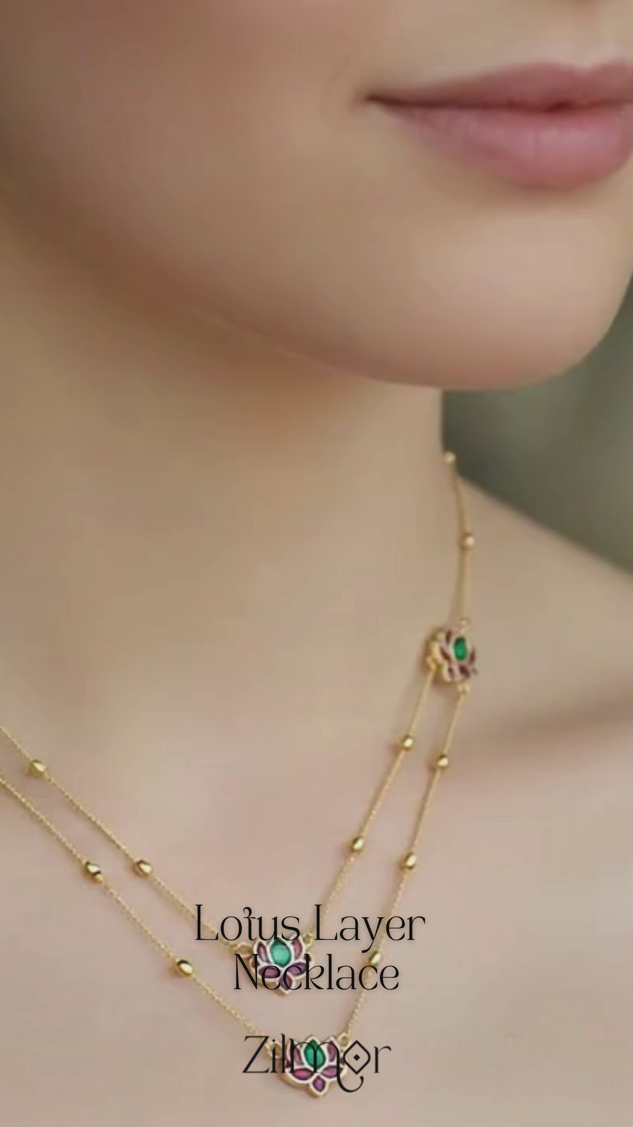 Necklace 1 :Layer 1 - 18 cm (one side),Layer 2 - 23 cm (one side)Pendant - 5 cm,Adjustable chain - 6 cm,Earrings - 1.5cm Necklace 2:Layer 1 - 23.5 cm (one side),Layer 2 - 26.5 cm (one side),Earring - 1.5 cm |