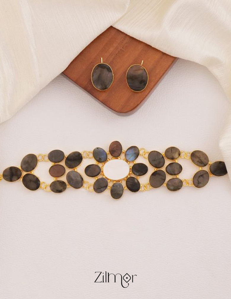 Natural stone is a powerful stress reliever bringing healing on a physical, mental, and spiritual level. It stimulates the imagination and awakens one to a feeling of selflove and empowerment. Multi color necklace sets includes choker, earring and ring.