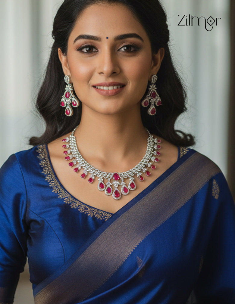 Make a bold and elegant statement with this AD Stone Choker Necklace Earrings Set, expertly designed to bring a touch of sophistication to any outfit.