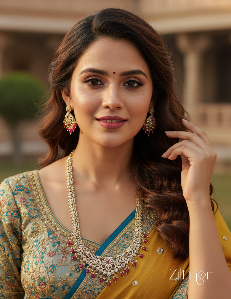 Add a touch of regal elegance to your collection with this Premium Antique AD Stone Necklace and Earrings Set.