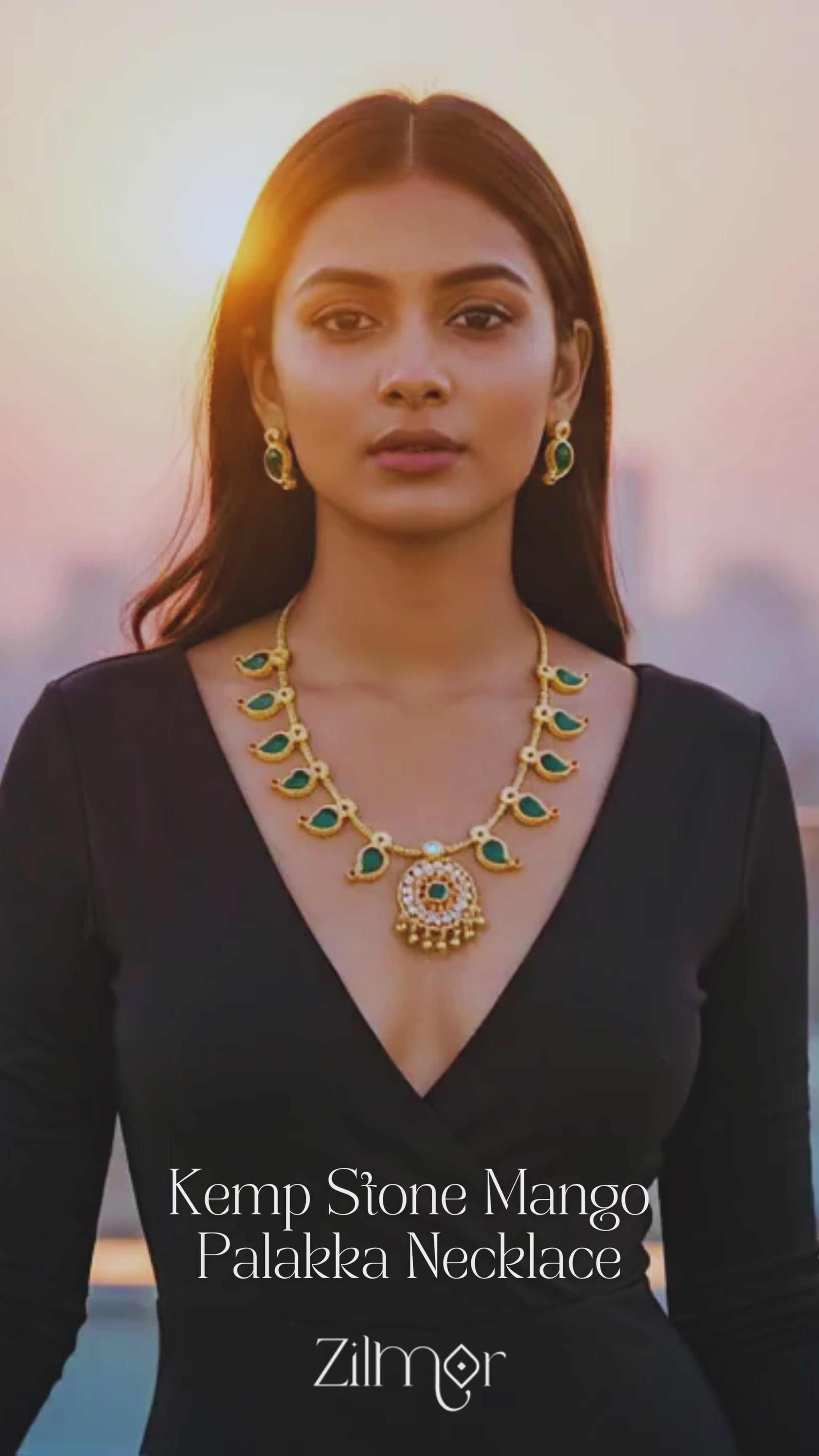 Add a touch of South Indian tradition to your jewelry collection with this exquisite Kemp Stone with Mango Palakka Necklace. This beautifully handcrafted choker Necklace combines the timeless elegance of classic Palakka green stones, creating a regal and ethnic charm.
